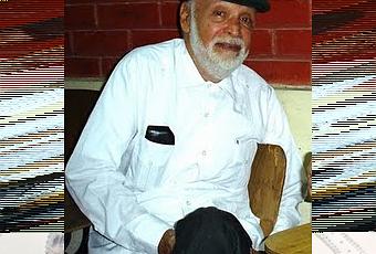 El poeta Roberto Sosa, sentado en un pupitre de la UNAH-VS, en diciembre de 2010. Fotografía de Gerardo Torres.