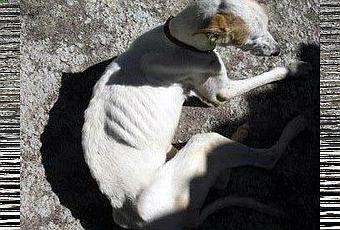 Su vida ha sido nacida para cazar, comida un triste pan duro y agua, sin cariños, mimos, ni una triste caricia y una dulce palabra, a medida que paso sus tres cortos años para ella una eternidad, cuando se acabo la época y VIDA no servia, tuvo encima suerte de ser abandonado, no colgada en un arbol. Deambulaba dando tumbos con su esqueleto cuerpo y sus patas sin fuerza por la A3 para morir atropellada. Pero eso no fue así , se cruzo su Ángel de la Guarda, que no dudo en correr el riesgo por las dos y parar y cogerla. No os podéis hacer la idea como estaría que no dudo en acercarse aquella mano amiga que le decía que ya se acabo.