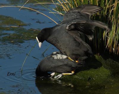 Aves tan belicosas como las fochas, tienen también su punto tierno.