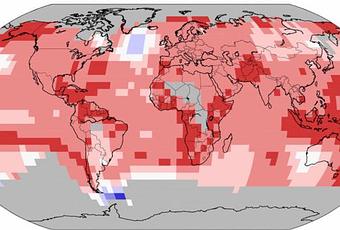 Tal y como se había sospechado ya desde finales del año pasado, el 2016 es oficialmente el nuevo año más cálido registrado, superando al récord anterior de 2015 por 0.07°F, según La Administración Nacional Oceánica y Atmosférica NOAA, por sus siglas en Inglés. Además, se convierte en el tercer año consecutivo que la temperatura media mundial de la superficie logra establecer un nuevo récord y la quinta vez que el récord se ha roto desde el comienzo del siglo XXI. En la animación presentada el día de hoy se muestra las temperaturas anuales de cada año desde 1880 en comparación con el promedio del siglo XX, terminando con un récord cálido de 2016 (el mapa de tiñe de matices rojos). Los mapas de finales de 1800 y principios de 1900 están dominados por tonos azules, indicando por el contrario temperaturas de hasta 3°C más frías que la media del siglo XX.