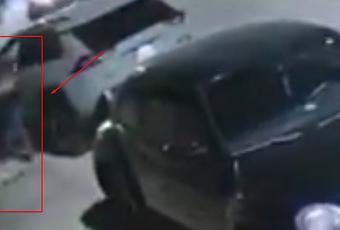 El asaltante se acerca y con gritos le pide a la mujer que descienda de su auto y le pide las llaves. El cómplice a bordo del vehículo rojo mantiene bloqueada la calle vigilando y en espera para escoltar la camioneta blanca recién robada.