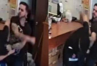 Cuando los otros empleados ven la agresión y reaccionan, el agresor se echa para atrás y se regresa a su asiento. El sujeto que era acompañado por otra persona le habla, mientras que una mujer reclama la agresión.