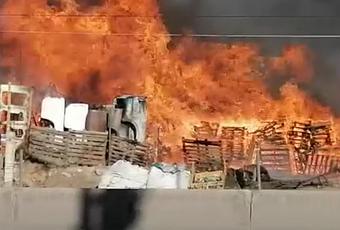 SLP.- Esta tarde se registró un fuerte incendio en una recicladora de madera ubicada en Anillo Periférico Oriente, entre la Carretera Ríoverde y el Camino Viejo a Cerro de San Pedro.