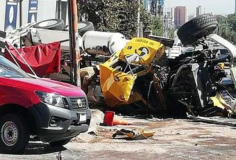 SLP.- Esta mañana se registró un lamentable accidente en donde una persona perdió la vida y 10 más resultaron lesionadas cuando una revolvedora de concreto perdió los frenos y se impactó contra varios vehículos en avenida Chapultepec.
