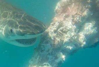 Vídeo muestra a tiburones que se alimentan del cadáver de una ballena