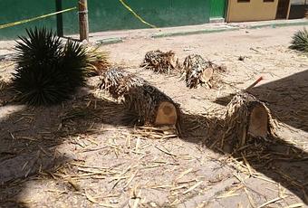 San Luis Potosí.- Este día el Ayuntamiento de Matehuala, a través de la Dirección de Ecología ha decidido cortar una palmera de cerca de 100 años de edad.