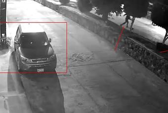 En las imágenes se puede apreciar como la víctima se encuentra caminando por avenida Cordillera Karakorum, cuando hombres armados a bordo de un vehículo le sorprenden a mitad de calle. El joven levanta las manos y comienza a caminar hacia atrás soltando la correo del perro. Al ver las intenciones de los dos hombres que venían cargando armas largas, intenta huir.
