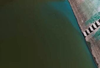 Gran parte de esta sustancia se encuentra a las orillas de la cortina de la presa y es de color azul con un tono verdoso.