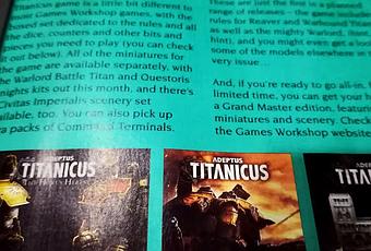 Con respecto al lanzamiento estrella de este mes, la caja de Adeptus Titanicus, me han pasado dos fotos de una revista recién abierta y hay algo que ha llamado la atención. Fijaros en la segunda foto, sobre todo:
