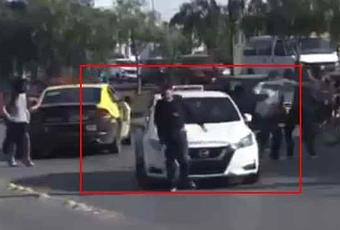 El pleito inició cuando el conductor del taxi con número económico 1667, embistió a un repartidor de plataforma en las inmediaciones de Industrias. El motociclista logró ponerse a salvo e informó a sus compañeros sobre el intento de homicidio del que fue objeto.
