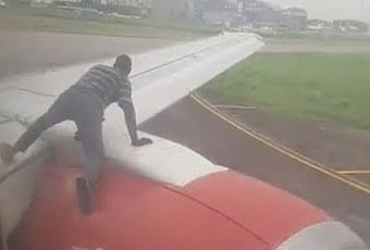 Un inusual episodio se dio en el aeropuerto de la ciudad de Lagos, en Nigeria, cuando un hombre irrumpió en la pista y se subió al ala de un avión que se preparaba para despegar.