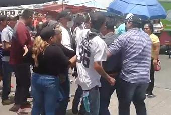 Los ánimos se calentaron y fue cuando se comenzaron a intercambiar gritos y golpes. Una de las personas que acompaña a los inspectores quedó tirada en el suelo de un golpe, no obstante uno de los comerciantes insistió el patearlo y luego propinarle un golpe en la cara como quedó evidenciado en vídeo.