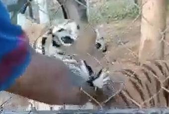 En un segundo intento el joven le grita “Ven mi chiquito” , quien inserto una de sus manos en uno de los orificios de la valla para acariciar al tigre mientras intentaba acariciarlo. Sin embargo, el espécimen reaccionó de forma intempestiva y con su hocico se prensó del brazo del joven.