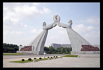 Cuando Ro llegó al patio frente al Pabellón Phanmun, la multitud lo recibió con hospitalidad agitando las banderas de reunificación.