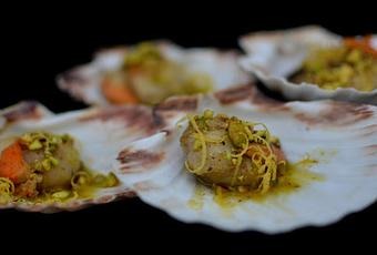 Hola a todos... Aqui os traigo una vieiras prapradadas con un aceite preparado con pistachos y aromas cítricos que son exquisitas! La vieira ya por si sola viene en la mas espectacular de las presentaciones, en esas maravilloas conchas y admás preparadas de esta manera, aparte de comer por los ojos, lo harás con todos los sentidos!! Un entrante ideal!!