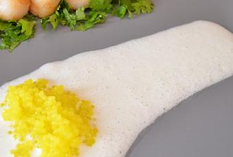 Elegido el pepino y lo he cocinado como una salsa, para acompañar a unas vieiras con unas perlas de yuzu, y os preguntareis ¿Qué es el yuzu?, pues es un cítrico japonés, no se suele comer se utiliza para hacer mermeladas y aderezar.