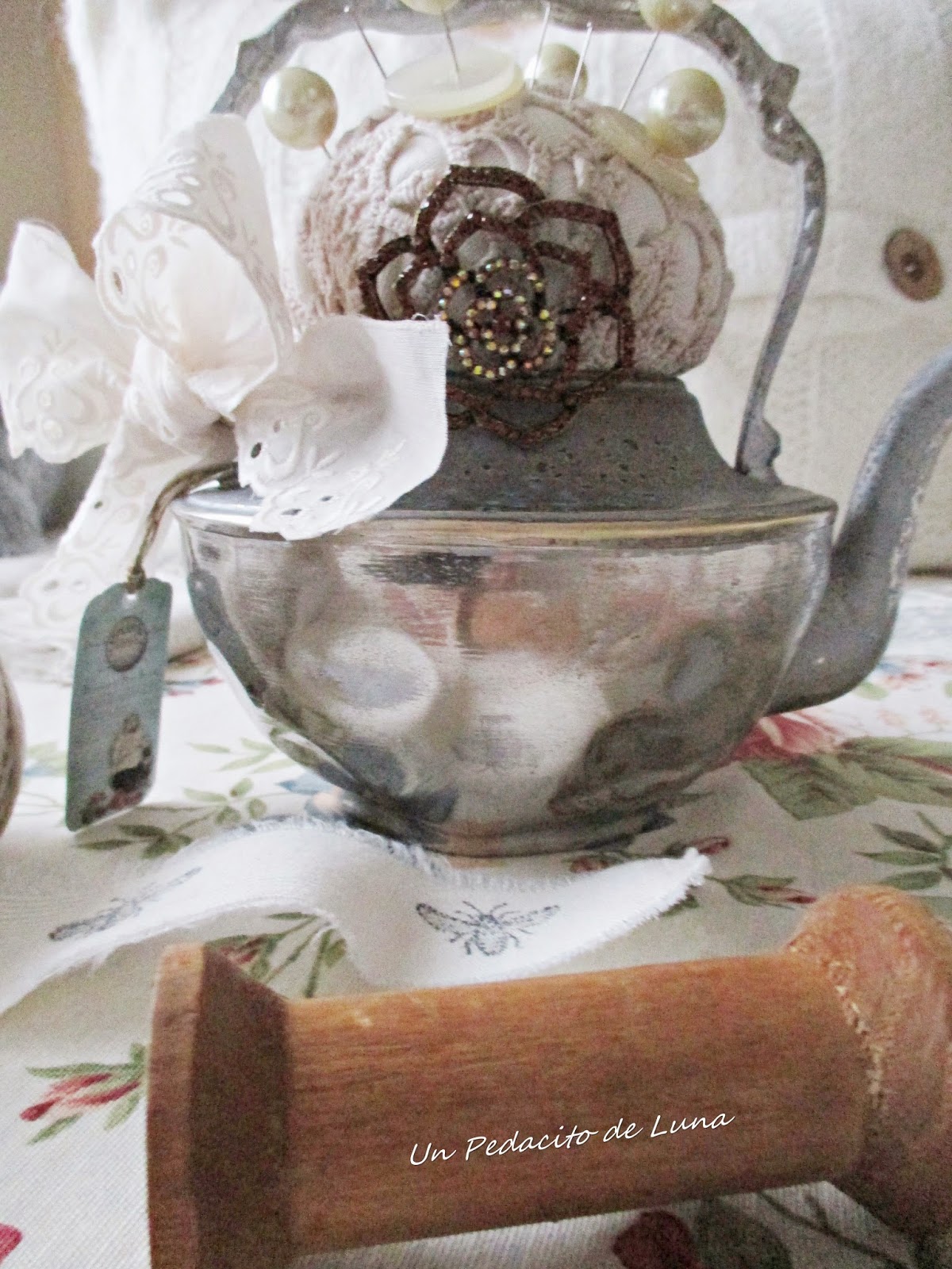 Esta vez, con poco tiempito tuve para crear esta rechonchita y linda tetera-alfiletero, no quería dejar de participar en el finde frugal de Colorín Colorado, donde Marcela nos provoca e incita a crear con sus ingeniosas ideas!!
