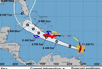 A las 11:00 am, Elsa se ubicaba en los 13.4 latitud norte y 61.2 oeste, a 1090 kilómetros al este de Santo Domingo, República Dominicana, con vientos máximos de 120 kilómetros por hora. Algún fortalecimiento adicional es posible.