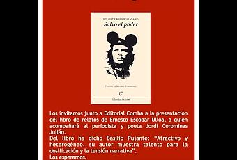 Este viernes en el Librerío de la plata de Sabadell tendré el placer de conversar con Ernesto Escobar Ulloa sobre su libro Salvo el poder, colección de relatos con múltiples giros desde una unidad contundente que hablan de Perú, los desdoblamientos de la realidad y el increíble juego de matices de la misma.