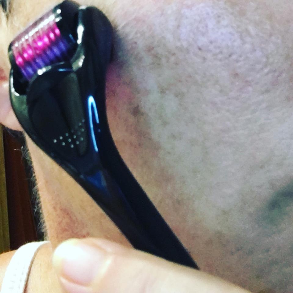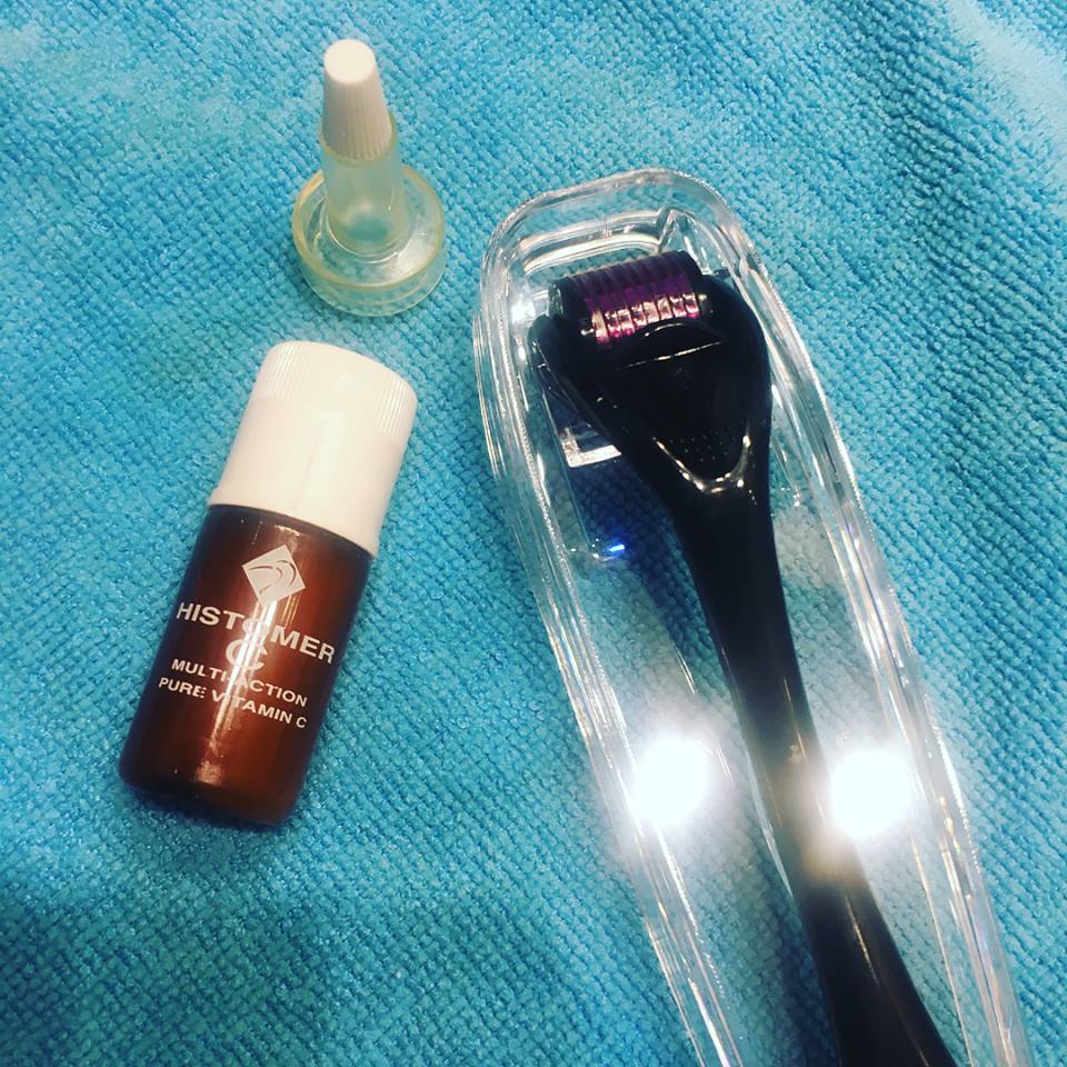 Me doy unas cuantas gotitas por la cara (también te puedes dar el suero después de usar la Derma Roller, también puedes usar la derma roller y luego las cremas de tratamiento), extiendo bien, y uso la Derma Roller.