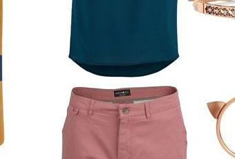 El top es de un azul petróleo que es más bien un color propio del invierno, pero no olvidemos que el otoño suave profundo fluye considerablemente hacia el invierno – aunque no sea tanto como el otoño profundo – y que el tono del top es, además, muy suave. Fijaos qué bien fluye hacia el rosa salmón (cálido) de los pantalones, sin discrepancias llamativas de temperatura.