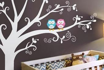 buhos pintados en una pared, que me decís?? demasiado cursi???
