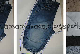 El patrón lo saque según se explica en el blog Mandarines a l'agost. Como tengo algunos pantalones bombachos de Alex de cuando era bebé, me vinieron bien para sacar el patrón con ellos.
