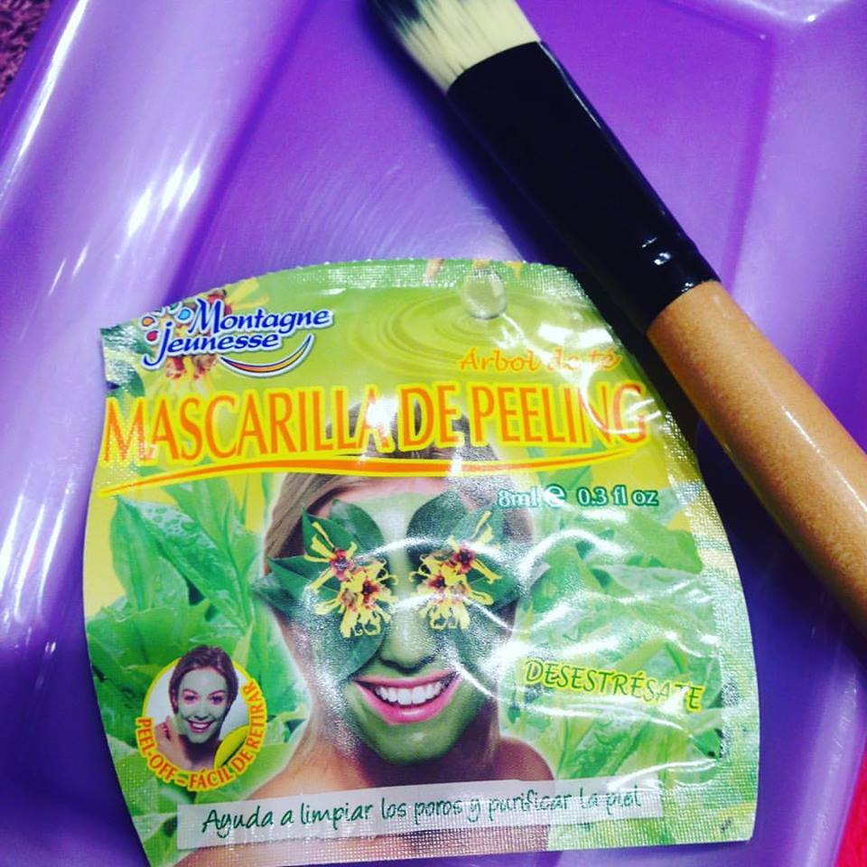 Pues tocó probar esta mascarilla facial, que como veis es Peeling de Arbol de té, con olmo escocés y la adelfilla canadiense.