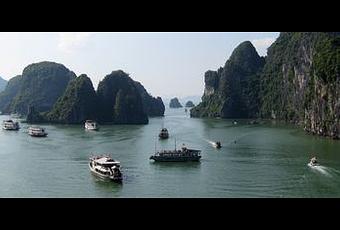 La bahía de Halong se encuentra a unos 300km al sureste de Hanoi y aunque en principio pudiera parecer una distancia para plantearse una excursión de un día, no es muy recomendable, pues el tráfico os puede hacer tardar más de 4 horas en llegar hasta el puerto (más otras tantas de vuelta). Como el resto del Golfo de Tokín, es una zona poco profunda, con gran cantidad de islas, siendo una de las más grandes la isla de Cat Ba.