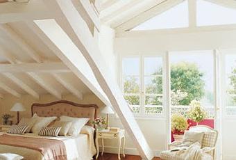 Yo soy una apasionada de lo rústico, siempre he deseado tener un ático de techo inclinado donde pintar...Hasta que estudié Feng Shui y supe que este tipo de techos no son muy indicados para pasar mucho tiempo debajo de ellos, ya que con su inclinación están creando una energía que presiona a quienes están debajo.Lo cual puede suponer desde dolores constantes de cabeza, espalda, estomago, dependiendo de que parte del cuerpo atraviese la viga horizontalmente mientras estáis acostados en la cama o la separación energética de la pareja si la viga atraviesa la cama de forma vertical.