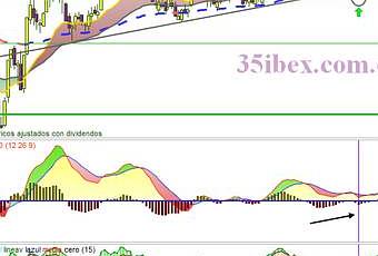 Más detalles para propiciar una compra de Repsol: divergencia alcista en el MACD...leve, pues el precio no hace un nuevo mínimo, pero es un detalle interesante. El Koncorde nos muestra entrada de mano fuerte, ¿Mas?
