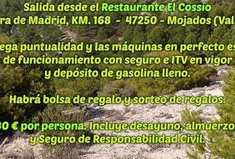 Tendrá lugar de comienzo en mojados ( Valladolid ) y llegaremos hasta la localidad segoviana de Cuellar y posterior regreso a mojados para dar cuenta del ya tradicional cocido quatrero.