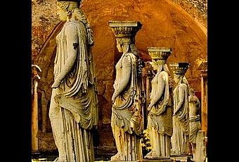 - El Pecicle que representa un pórtico griego con una gran piscina en su interior.