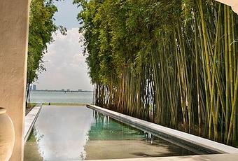 El estilo mediterráneo de esta villa de lujo, las vistas sobre el océano, esa piscina de borde infinito que se funde con el mar y flanqueada por ese bosque de bambú, justifican su valor. Sus interiores en un blanco inmaculado y muy luminosos, resaltan aún más la belleza del mobiliario de madera, donde se respira una atmósfera muy relajante.