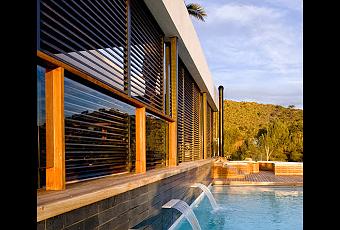 Es una vivienda de gran superficie, 740 metros cuadrados, separados en dos bloques horizontales comunicados y una gran piscina