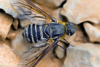 "El género Villa está compuesto por un gran número de especies difíciles de distinguir entre si a través de las fotografias. Tienen aspecto de abejas y al igual que éstas actúan como polinizadores de las plantas."