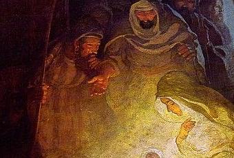 Ilustración N. C. Wyeth.-José María Pemán-Yo teníatanta rosa de alegría,tanto lirio de pasión,que entre mano y corazónel Niño no me cabía…Dejé la rosa primero.Con una mano vacía— noche clara y alba fría —me eché a andar por el sendero.Dejé los lirios después.Libre de mentiras bellas,me eché a andar tras las estrellascon sangre y nieve en los pies.Y sin aquella alegría,pero con otra ilusión,llena la mano y vacía,cómo Jesús me cabía— ¡y cómo me sonreía! —entre mano y corazón
