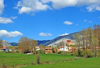 Su iglesia de San Martín domina el Caserío, y luce su portada románica y un elegante pórtico.