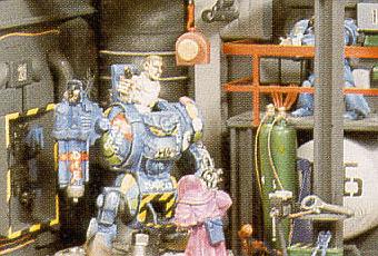 Esta curiosa imagen me la conseguido Kit y un pequeño diorama que se presento al Golden Demon ingles de 1988.No consiguió premio pero si una mención de honor(Casi un premio, diría yo,en si mismo).Su creador es J.S Wilderm y nos muestra como un piloto de un Dread se introduce(O sale,porque puede ser ambas cosas)por su propio pie en (O de) su maquina.En el RT,lo pilotos de estas maquinas de guerra no eran guerreros heroicos heridos en batalla de tal forma que,en vez de morir o quedar completamente inútiles,eran conectados a través de su sistema nervioso a unas maquinas que servían de armadura y sarcófago.Eran pilotos que se conectaban a sus maquinas pero solían estar en excelentes condiciones físicas. Lo malo que el desconectarse de su maquina y salir era muy doloroso para ellos,por lo que se acababan quedando todo lo que podían en sus maquinas y cuando salían estaban cada vez mas y mas desmejorados, fusionándose con la maquina.