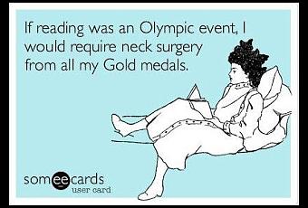 "Si leer fuera un deporte olímpico, terminaría llevando collarín por culpa de todas las medallas de oro"Me gusta esta viñeta porque me parece graciosa, pero al mismo tiempo, me hace pararme a reflexionar. No me gusta el hecho de considerar la lectura una competición. He visto blogs que leen 200 o 300 libros al año y es algo que me parece excesivo, pues implica leer un libro al día o cada dos días. No digo que no sea posible, ojo, si tienes todo el tiempo del mundo y no haces nada más es normal que puedas leer tanto, pero me pregunto qué tan hondo calan esas lecturas y cuánto tiempo se dedica una a reflexionar sobre su contenido.