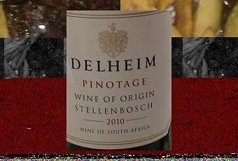 El vino tinto Delheim 2010 es un vino elaborado con la uva pinotage 100%, que es la variedad sudafricana por excelencia. Es un vino con aromas y sabor muy especiados, ideal para carnes insípidas como gacela, avestruz, cebra o y para carnes fuertes como las de caza, también huevos como los de oca y avestruz. Tiene 12 meses de barrica en roble francés mayoritariamente, de color rojo rubí muy intenso con gran opacidad, aromas a moras, esmalte y especias con paso largo y agradable equilibrado y sabores especiados. Servir entre 15 y 17°C.