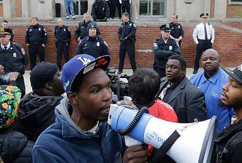 La escena caótica llevó a las primeras declaraciones públicas desde la hermana gemela de Freddie Gray, quien abogó por la paz en una conferencia de prensa junto al alcalde.
