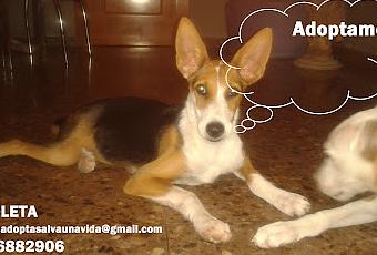 VIOLETA, tiene aprox. 3.5 meses, es una de las perritas mas originales, cariñosa, dulce, trastilla, vital, y una verdadera alegria para la familia que sea la afortunada de adoptarla. Su pelaje es tricolor como los beagles. PASAN Y PASAN LOS DIAS Y NADIE SE FIJA EN ESTA MARAVILLOSA PERRITA.