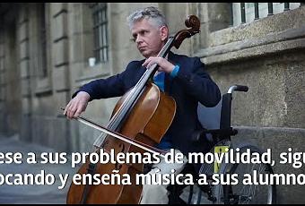 “Con su silla de ruedas y una pierna amputada se instala en una de las esquinas más concurridas de A Coruña, desenfunda su instrumento y empieza a tocar. Asoman las suites para chelo de Bach, el My Way de Frank Sinatra... Y la calle Real cobra vida. Una vecina se acerca: “¿Dónde se había metido usted? Lleva tres días sin venir por aquí y esto está más alegre cuando viene a visitarnos. Vladimir von Litvikh (San Petersburgo, 1967, y de origen alemán) sonríe y sigue tocando. En realidad, no puede dejar de hacerlo. Toca para sobrevivir”, para remontar ‘un bache del destino’. Y, por ahora, solo dispone de la calle”.Lo cuenta con todo detalle Alfonso Andrade en La Voz de Galicia. El músico al que se refiere estuvo en el nacimiento de la Orquesta Sinfónica de Galicia (OSG), en 1992. A las pruebas de audición llegó con el concierto de Dvorák. Y se mantuvo 26 años en la Orquesta, hasta que el pasado febrero se quedó en la calle, sin pierna y con un problema circulatorio. “A partir de ese momento -resume Litvikh- tenía dos alternativas, o me encerraba en casa y enfermaba hasta morir o encontraba una salida digna”. El violonchelo fue la herramienta que le permitió volver a sentirse persona, porque “un músico está muerto cuando no tiene a nadie que lo escuche”, sentencia. “La música que sale de mi violonchelo entre las piedras de esta preciosa ciudad es ahora el grito de mi alma, necesito seguir tocando donde sea y sobrevivir moralmente”, proclama, orgulloso. “En una situación como la mía -reflexiona mientras deja en el aire los primeros compases de una sonata de Brahms- es fácil venirse abajo. Pero he decidido que eso no me interesa, hay que ser fuerte y continuar. La vida da muchas vueltas”.Luego, siguieron otras cinco operaciones y la pérdida de un músculo “que no me debían haber quitado -dice-, porque ahora tengo muy difícil mover una prótesis”, y teme verse abocado a la silla de por vida. El Estado le concedió una incapacidad permanente (él reclamaba la absoluta) que le impedía seguir tocando en la orquesta. En la valoración de la minusvalía por el tribunal médico le concedieron “solo un 55 % porque atendieron a tres diagnósticos de los 18 que me hicieron”, por lo que recibe cada mes una “pequeña” cantidad que no le da para vivir. Repite que él no tiene la culpa de todo esto, “pero sí la Administración, tal y como está la normativa. Ahora mis ingresos han bajado considerablemente, más de mil euros cada mes”. En una jornada puede conseguir unos quince euros en monedas, pero tres ya se me van en el párking, y siete u ocho en gasolina (vive en Abegondo, a 30 kilómetros). Pero la razón de su presencia en la calle no es solo económica, sino también existencial: la necesidad de salir a flote. “La sonrisa de un niño cuando me escucha hace que todo esto valga la pena”, valora este profesional, obligado actuar en la calle.Con 74 años y sin la pierna, perdió uno de los cuatro apoyos que necesita un violonchelista: “Me limita entre un 30 y un 35 %, y, en algunos registros, necesito corregir la postura con trucos. Es evidente que sería complicado volver a formar parte de una orquesta tan fantástica como la OSG. Mis antiguos compañeros, entre los que hay personas maravillosas, se paran a oírme tocar. También Andrés Lacasa, gerente de la Sinfónica, me saluda con educación y se queda a charlar... Aunque hay quien hace como si no me conociese”, lamenta, dolido. Lo irónico de este caso excepcional es que la música se cierra para los profesionales cualificados como él. Podría trabajar como profesor, pero no es fácil, y casi imposible para extranjeros, incluso hablando ruso o alemán, a los que lo primero que les pide la Administración es dominar el gallego. Por esto Vladimir von Litvikh se limita a dar clases particulares y a tocar por la calle.