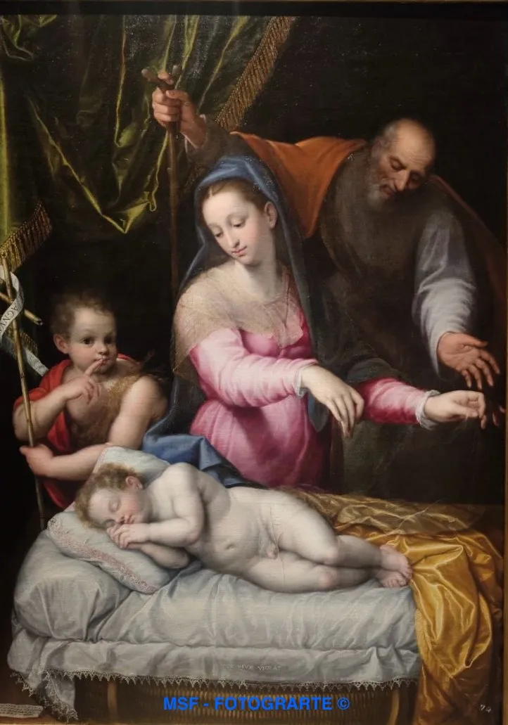 The scene is based on the famous painting by Raphael (ca. 1511-1512), now in the Condé Museum in Chantilly. But her personal interpretation was so novel that it achieved great success in Spain, with numerous copies and variants of the theme being produced. Lavinia was one of the few recognised female painters and, once again, she showed her determination to be recognised as an artist by signing this work. This meant a change in the role and consideration of women in society in the second half of the 16th century. Her clear and decorous language, very much in keeping with the sentiment of the Counter-Reformation of the time, was a great success in the papal court and in all courtly circles. Philip II managed to possess this Virgin of Silence, which is one of the best devotional creations and which was incorporated into the collections of El Escorial in 1593.