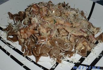 Hoy un plato algo fuera de lo normal. Estas virutas es un tipo de pasta que compré cuando visité la tienda de Naiara La Bolboreta . Es una tienda gourmet y taller de cocina situada en Móstoles. Allí compré unos cuantos artículos entre los que se encontraban estas virutas del Montseny elaboradas artesanalmente y con sabor a setas. Y las quería reservar para elaborar un plato especial. Y luego, hace unos días, compré unos artículos en la tienda de Paloma Planeta Colometa abrió hace poco en Tres Cantos, donde yo también resido. Entre ellos había un tarro de rebozuelos deshidratados que resultan muy aromáticos y sabrosos para cocinar. Y ha salido un plato de fiesta total con ingredientes de estas dos amigas blogueras. Y a ellas se lo quiero dedicar con mi mejor deseo de que este nuevo proyecto salga a adelante con el mayor de los éxitos. Espero que os guste!