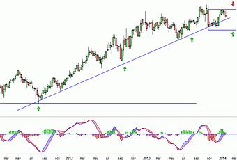 Viscofán: está tanteando la directriz alcista de largo plazo y le cuestan los 43 €, pero a pesar de esta circunstancia aun no ha perforado el mínimo anterior, en base a ello sigue bien situada para continuar escalando posiciones en próximos meses. Hay que vigilar los mínimos de hace pocas semanas en 37,61 €, donde situaremos el stop loss, y los entornos de 43,30 que de ser superados habrirían una nueva ventana alcista con objetivo en los 48-50 € a medio plazo.