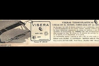 La colocación se efectuaba en 10 minutos sin realizar perforaciones en la carrocería del automóvil. También el texto del aviso agrupado mencionaba que no se agrietaba el material plástico, tampoco se alteraba y no se resquebrajaba. Había disponibles en dos colores: verde y azul. Se publicitaba a las viseras CG como “anti-sol”y “anti-encandilante”. Según la misma publicidad rechazaba los rayos infrarrojos logrando “un campo de sombras” y “una temperatura agradable”.