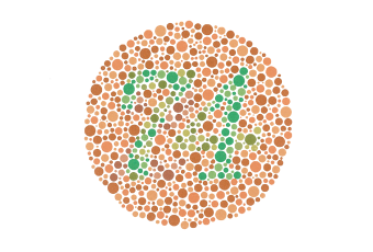 Una prueba muy usada para valorar la visión cromática es mediante los discos de Ishihara que son números formados por puntitos sobre un fondo de puntitos de otro color.