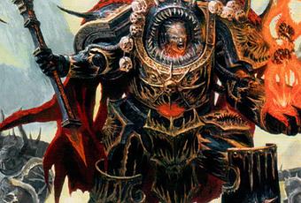 Los Marines Espaciales tienen desde siempre una iconografía muy marcada, y de entre ellos, los Marines del Caos, lo que han dado la espalda al Imperio y al Emperador, los que mas. Sus armaduras retorcidas, recubiertas de runas, pinchos, remaches, cuernos y toda clase de signos del favor de los Dioses de Caos. A lo largo de los años, unas tres décadas, la producción de ilustraciones sobre los Marines del Caos ha sido abundante y variada, con muchos buenos ejemplos, que en algunos casos se han convertido en figuras, ya sea por obra de GW o por sus aficionados.
